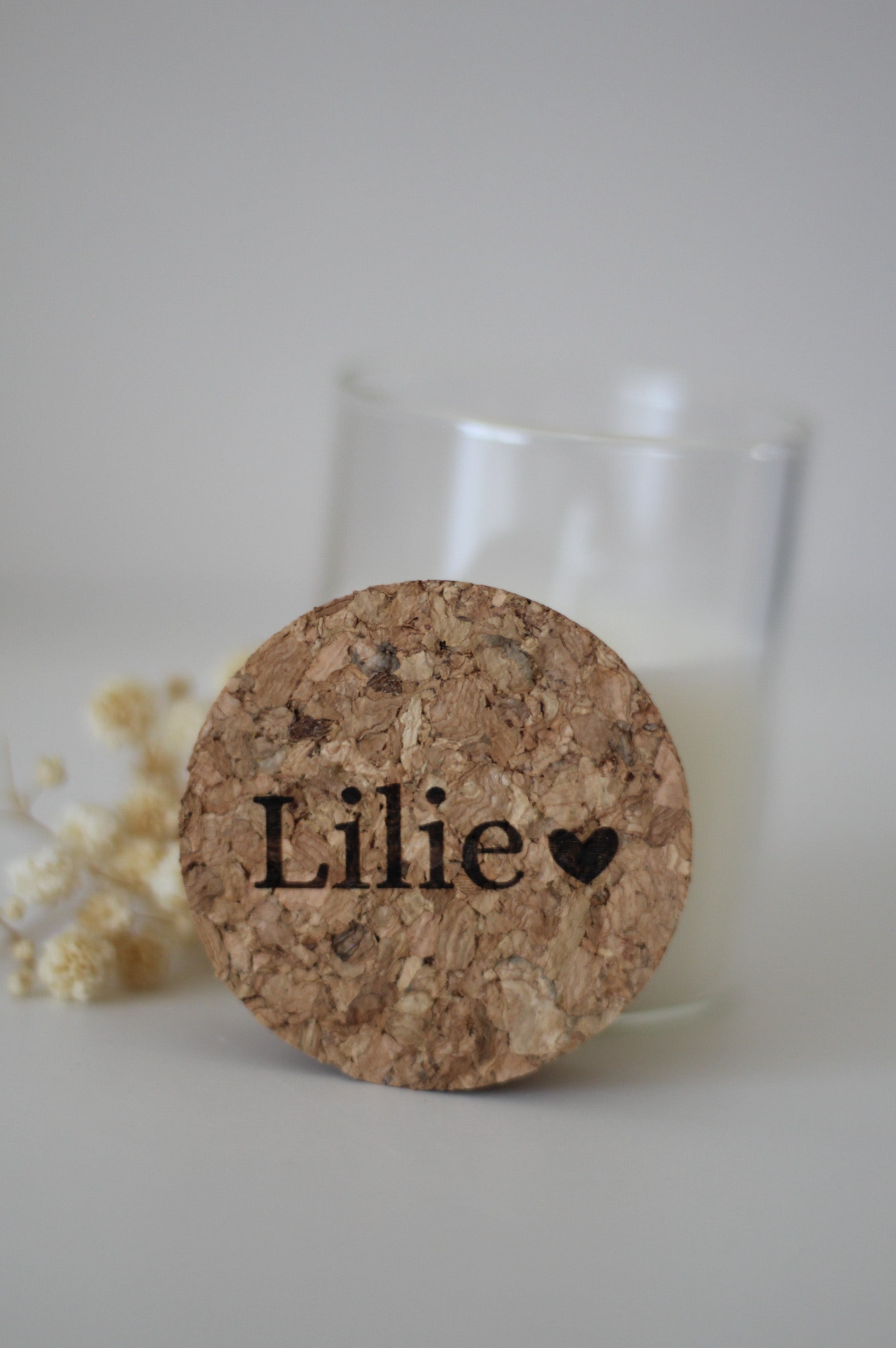 Een kaarsje in glazen potje met kurken deksel is perfect om te personaliseren en als uitdeelcadeautje mee te geven.