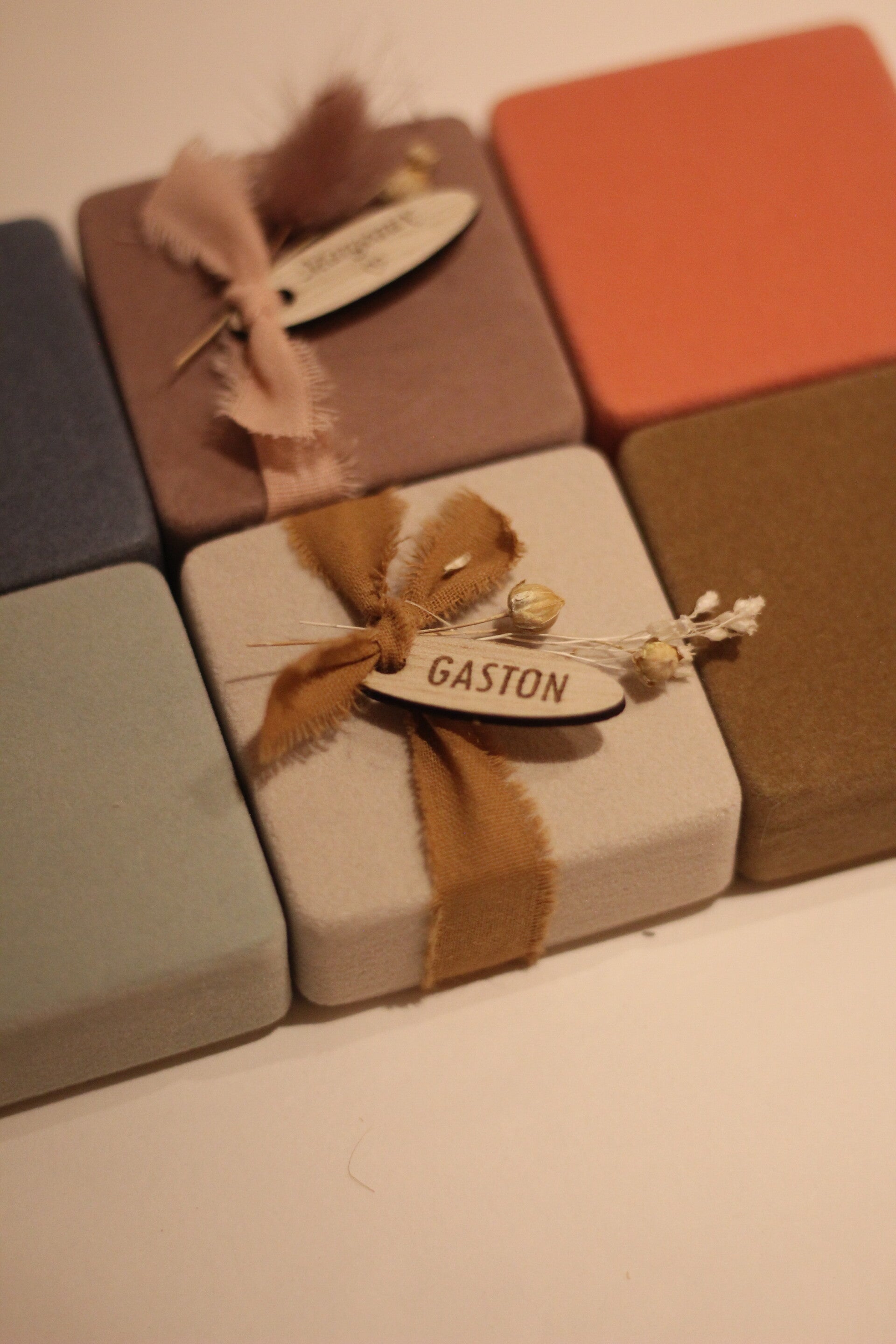 Een suede box is perfect om te vullen en te personaliseren en als uitdeelcadeautje mee te geven.