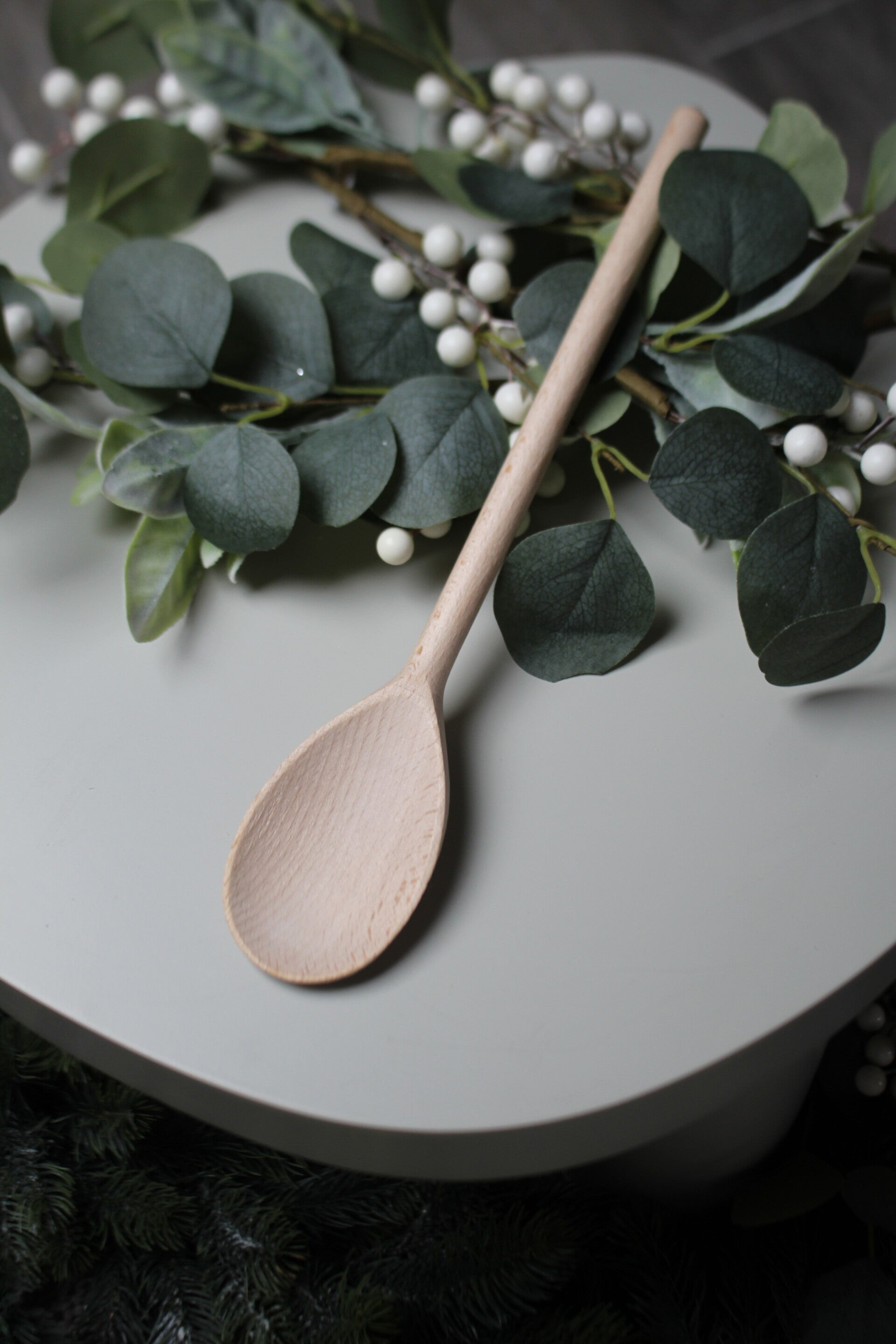 Deze stevige houten kooklepel is een onmisbare hulp voor iedere kookliefhebber. Met zijn afmetingen van 30 cm lang, 5,5 cm breed en 1,3 cm dik is hij perfect geschikt voor dagelijks gebruik in de keuken.