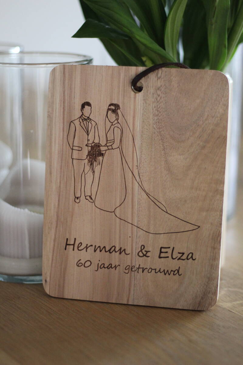 Lijntekening gegraveerd op tapasplank - klein