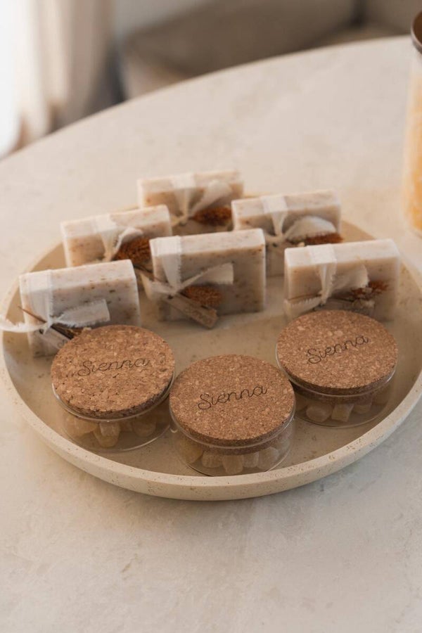 Een potje met kurken deksel is perfect om te vullen en te personaliseren en als uitdeelcadeautje mee te geven.