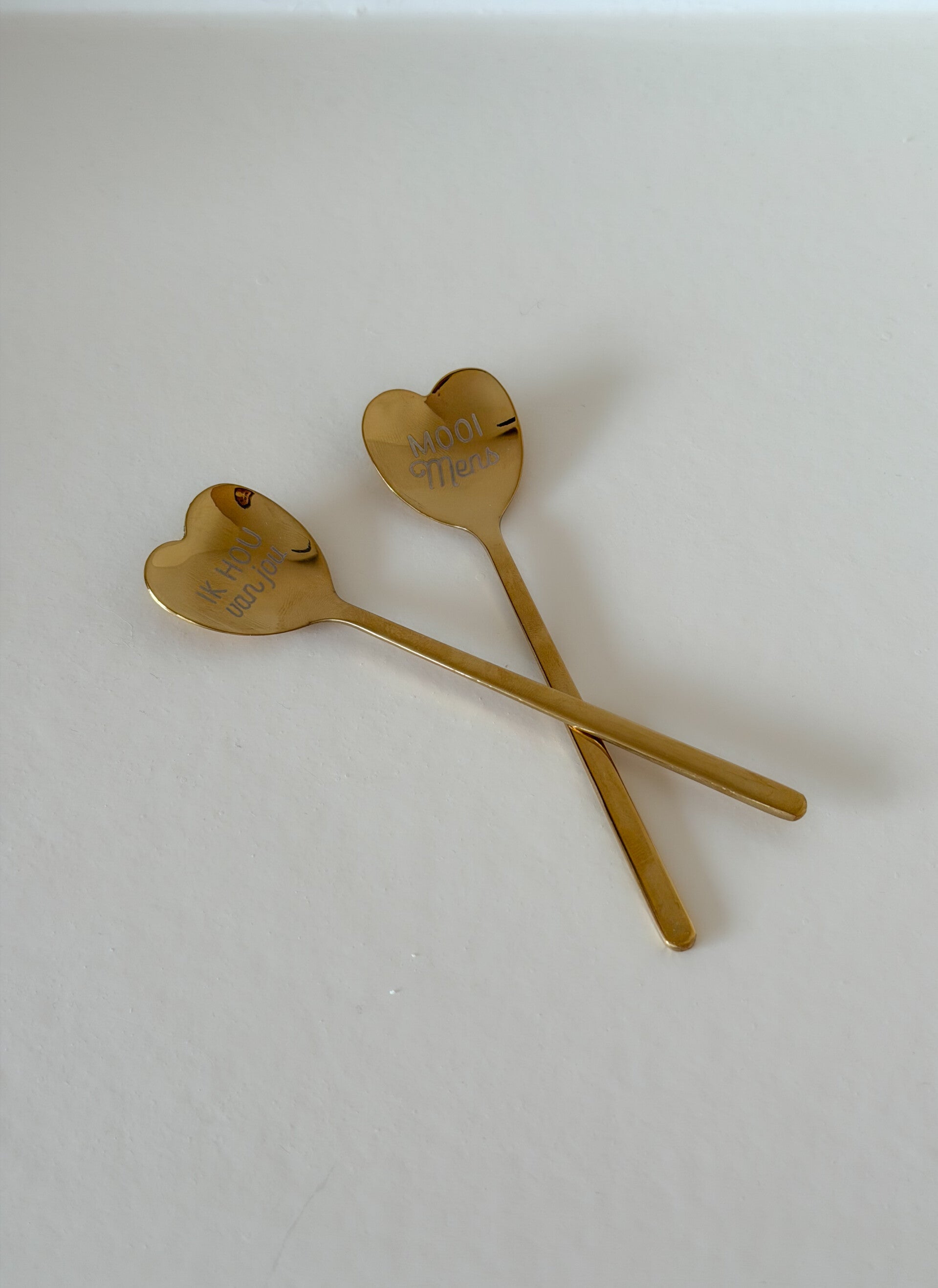 - 2 gouden lepeltjes van roestvrij staal: keuze uit verschillende opschriften