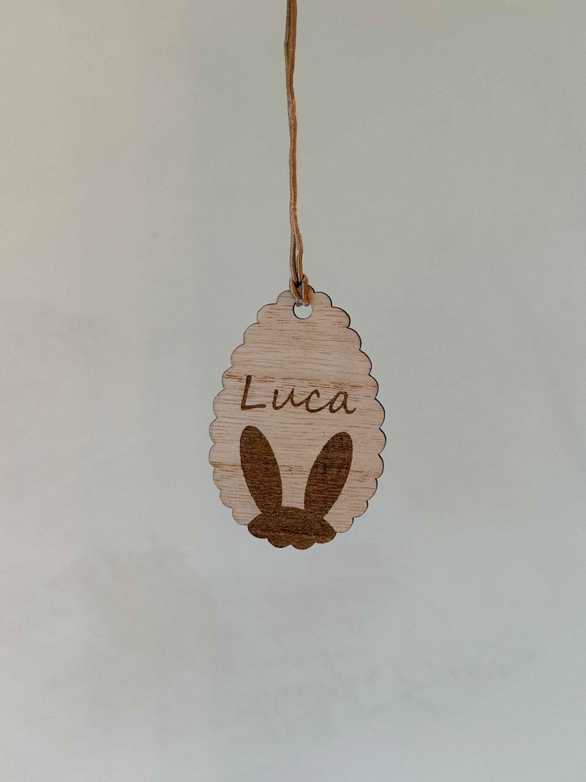 gepersonaliseerde paashanger - paasei met konijnenoren