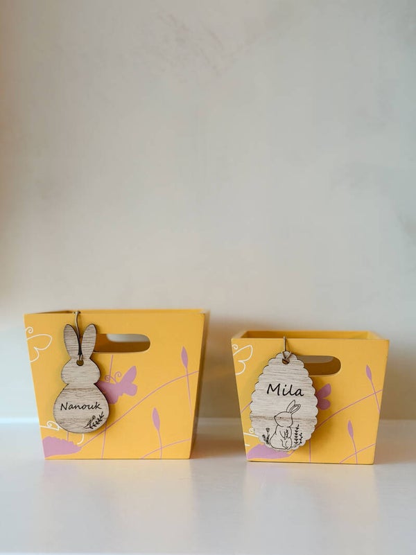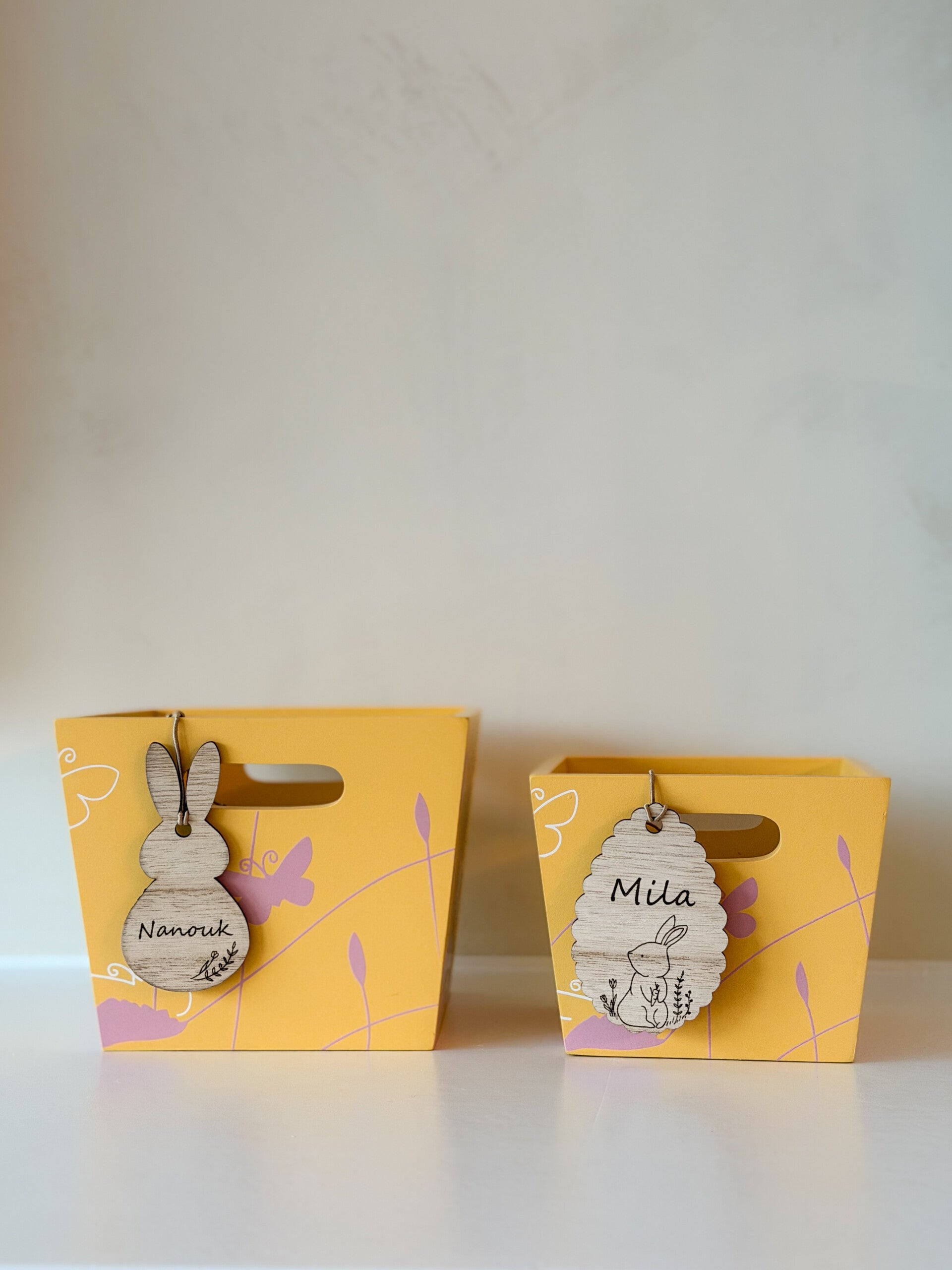Maak Pasen extra leuk met deze gepersonaliseerde houten hanger in de vorm van een konijntje (b 4,5 cm x h 9 cm).