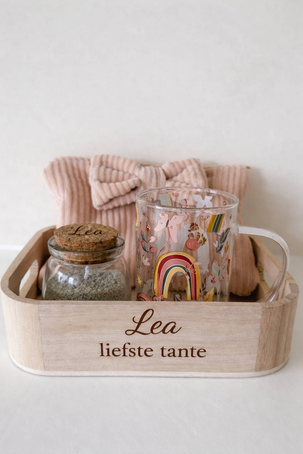 Een zorgvuldig samengestelde cadeauset die warmte, zachtheid en persoonlijkheid combineert. Perfect om iemand écht te verrassen, of het nu gaat om een lentefeest, communie, Moederdag of een oprecht bedankje. Dankzij de personalisatiemogelijkheden maak je van deze set een uniek en blijvend aandenken.